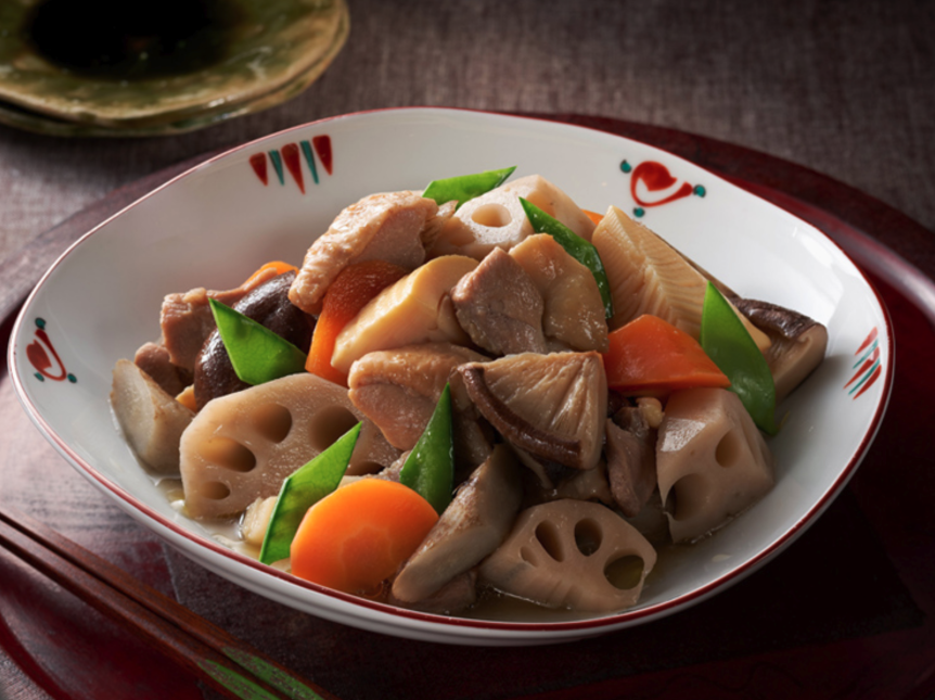 みつせ鶏と根菜の香ばしさにとり醤油の旨味と風味が加わって、深い美味しさに♪